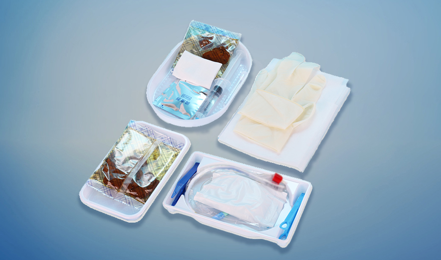 由注射器(內裝純化水,非注射用)、導尿管、導管夾、塑料鑷、塑料試管及管塞、孔巾、鋪巾、紗布塊、止水器、潤滑劑、引流袋、托盤、碘伏棉球,手套等組成。
